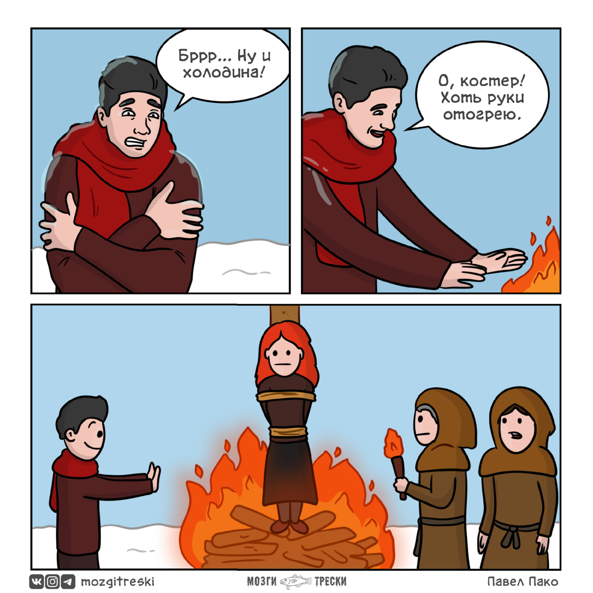 Закончилось уже два месяца 2022 года, а я все еще не выкладывал здесь подборок со своими новыми комиксами. Непорядок! Пора исправляться. Тем более, что свеженьких работ как раз накопилось достаточное количество. В этот раз они не объединены никакой общей темой: я просто собрал все, что выходила за последнее время и добавил в статью в хронологическом порядке - от более старого к более новому. Так, что если вы читаете меня только здесь, сможете увидеть последние комиксы ровно так, как они и выходили. Надеюсь, что вам понравится! Любую статью об авторе комиксов я начинаю с небольшой справки о том, кто он такой и каким проектом занимается. Пожалуй, не будем нарушать традиции: меня зовут Павел Пако и начиная с конца 2017 года я рисую серию юмористических веб-комиксов под названием Мозги трески. Новые выпуски выходят каждый понедельник на таких сайтах сайтах, как ВКонтакте, Инстаграм (здесь еще и на английском) и Телеграм. Чаще всего комиксы серии Мозги трески - это никак не связанные между