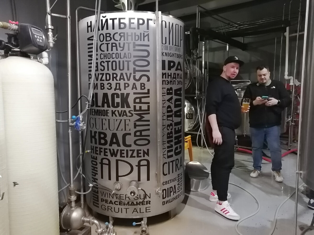 Настало время вернуться в Питер и постараться вспомнить и описать все наши приключения недавней поездки. После заселения в нумера с икрой и шампанским, первым делом мы двинулись на экскурсию на пивоварню Knightberg. Ту самую, на которой десять лет назад сварили первый промышленный IPA в России. Я вам пересказывать эту историю не буду, для этого сняли видос, который уже все посмотрели и обсудили. На пивоварню мы в принципе приехали в гости к Саше Федосеенко, известному многим под ником Мухтар. Он вместе с небезызвестной Еленой Тюкиной отвечает за варки, любезно провёл нас по производству, показал интересные детали и гостеприимно надегустировал. Как я писал в предыдущем посте: «Если вы были хоть на одной пивоварне, то считайте были на всех». Так что про само производство рассказывать особо не буду, остановлюсь лишь на паре интересных деталей. Во-первых, пивоварня и тапрум Knightberg располагаются прямо в здании гостиницы Санкт-Петербург, на противоположном берегу от которой пришвартов