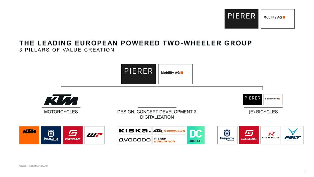 Не ошибусь, если скажу, что компанию КТМ знают все мотоциклисты. Последнее десятилетие стало для этой компании очень удачным. Впрочем надо заметить, что это утверждение можно применить и к другим европейским производителям мотоциклов BMW, Triumph, Ducati, которые в отличии от японских сумели лучше приспособиться к запросам покупателей запада. Так вот если копнуть КТМ глубже, то обнаружится, что это лишь один из брендов большой зонтичной компании Pierer Mobility. И стоит вспомнить и то что в 1991 году KTM разорились. Pierer Mobility - это довольно новое название (2019 года название KTM Industries AG), но знаковое, так как именно Стефан Пирер и стал тем самым собирателем "земель" сумевшим собрать под одной "крышей" всех этих разношерстных производителей. На сегодня выглядит Pierer Mobility примерно вот так: Мотоциклы Итак. Первый столп это KTM Motorcycles. Тут производят мотоциклы. Как ни странно. Собственно KTM, Husqvarna, которая стала частью империи Пирера в 2013 году), GasGas (20