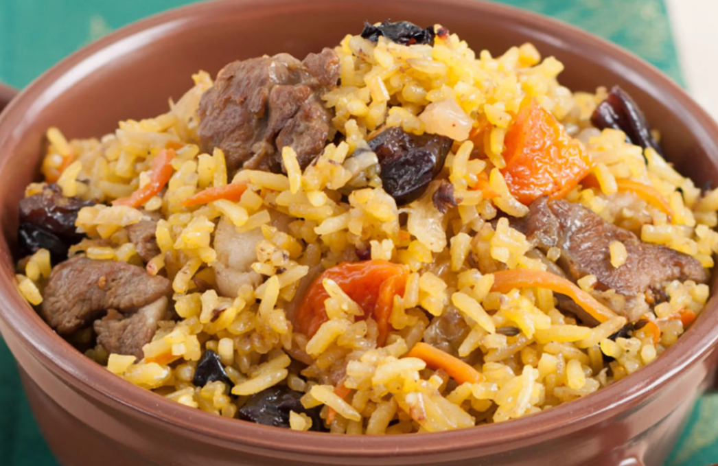 Необычный плов с бараниной Вкусный и быстро приготовленный на плите Нам понадобятся продукты: 600 г. баранины, 1 ст. риса, 200 г. чернослива и кураги, 1 л. воды, 2 ст. горячей воды, 1 большая головка репчатого лука, 2 шт. моркови, соль, перец, зелень, любые приправы по вкусу, 2 ст.л.растительного масла, Готовим: 1.Мясо промываем, высушиваем бумажным полотенцем, срезаем прожилки и толстые жировые прослойки и нарезаем мясо небольшими ломтиками. 2.Очищаем луковицы, промываем и нарезаем ножом на доске полукольцами. 3.Прогреваем в сковороде масло и обжариваем кусочки баранины и лук, солим, перчим, до золотистой корочки мяса, добавляем 1,5 стакана воды, 4.Промытый и нарезанный на ломтики чернослив и курагу, корицу и тушим на медленном огне до полной готовности. 5.В это время отвариваем в подсоленной воде рис, предварительно обжарив на жире до прозрачности. 6.Когда мясо с черносливом приготовится, добавляем в кастрюлю отварной рис, хорошенько перемешиваем деревянной ложкой и тушим еще в