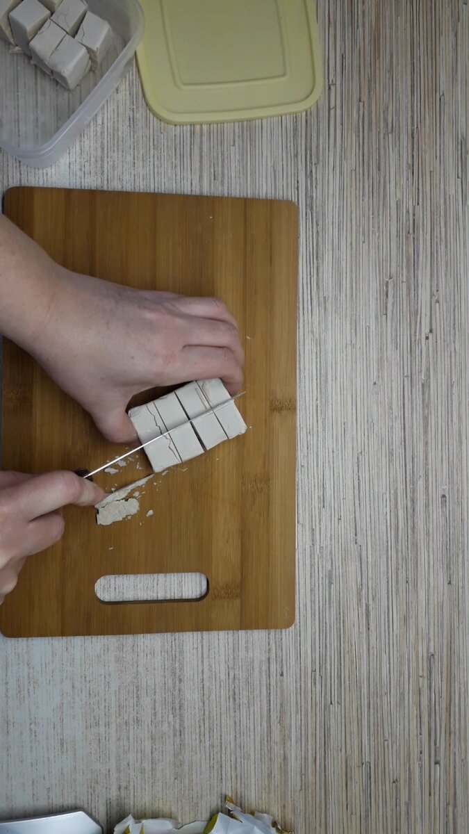 КАК Я ХРАНЮ ЖИВЫЕ ДРОЖЖИ Покупаю в магазине живые дрожжи. Пачку дрожжей делю на 8 частей, одна часть - 10гр. Кладу дрожжи в пластиковый контейнер и отправляю в морозилку. По мере необходимости достаю из контейнера один кусочек и замешиваю тесто. Мне нравится работать именно с живыми дрожжами, чтобы они не портились храню в морозилке.