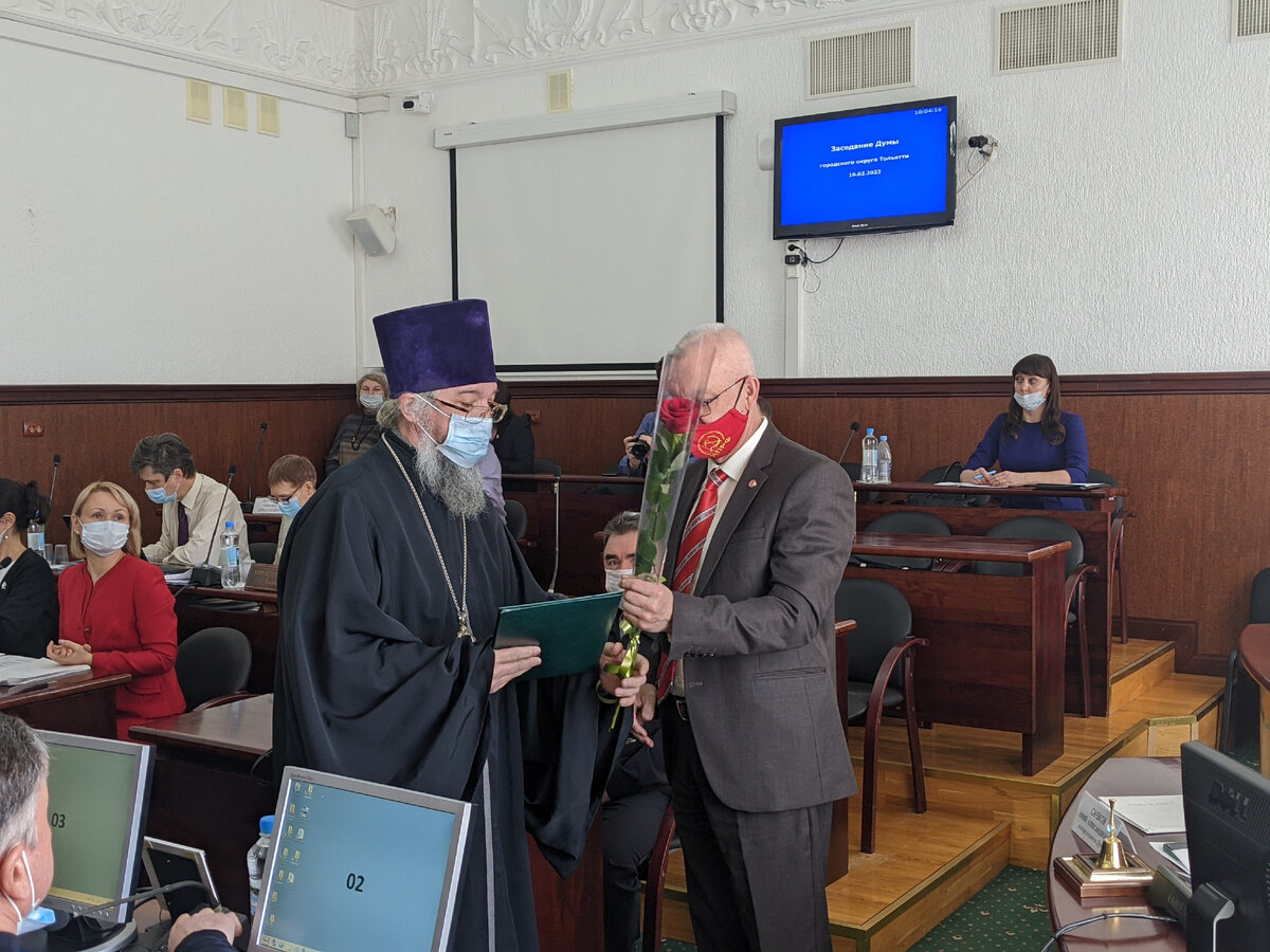 После награждения отец Александр поблагодарил членов Думы и сказал, что вера во Христа помогает и жить, и проявлять любовь к ближним. Обращаясь к депутатам, отец Александр призвал заботиться о горожанах: «Время сегодня трудное, но оно всегда было трудным. Хотел бы напомнить о личной ответственности каждого из нас о благополучии наших сограждан».