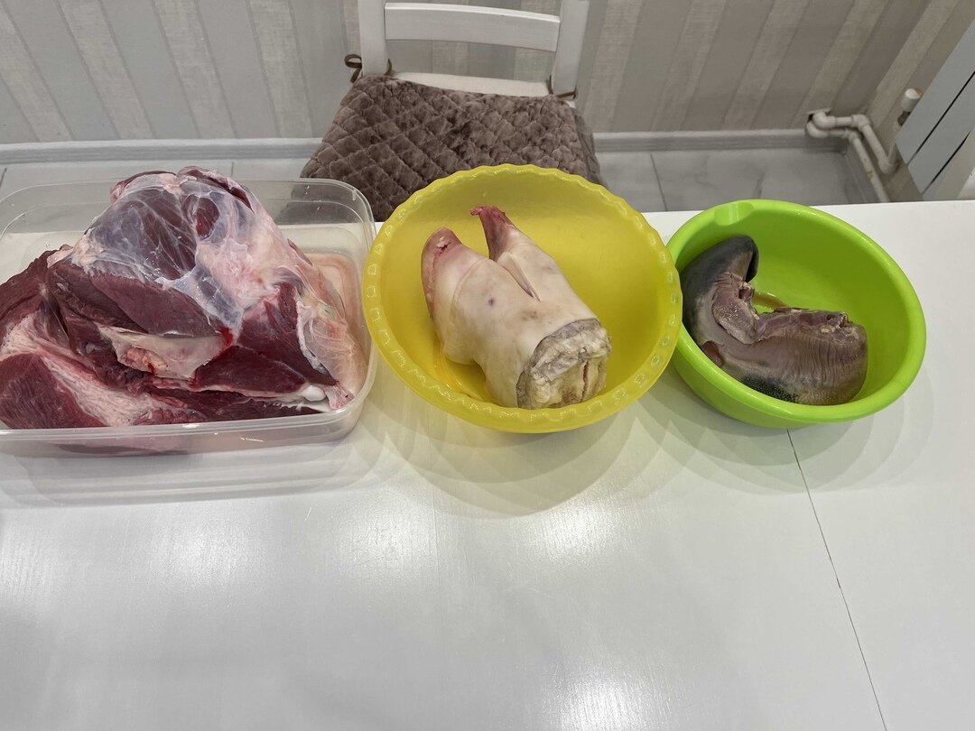 Привет дорогие друзья, меня зовут Алексей, я готовлю разные вкусные и простые блюда, у меня есть еще канал на ютубе, называется ДОМАШНЯЯ ЗАГОТОВКА там у меня больше 1400 выдео разных направлений рецептов ,есть там плейлисты с разделами, я уверен вы точно подберете себе блюдо на любой вкус, я очень стараюсь для вас ,если вам интересно заходите и на ютубе канал буду очень рад с вами подружится, там же можете оставить мне комментарий, с радость на него отвечу ,еще друзья попрошу вас писать комментарии и ваши пожелания ,вместе с вами и прекрасным настроением всегда, на приготовлении сегодня у нас будет мощный необыкновенный домашний холодец говяжий язык ,говядина голяшка, копыта говяжье ,сначала надо все вымочить примерно 6 часов переодически меняя воду вот так вымочили а теперь начнем ,говяжий язык я буду варить отдельно, только потому что у меня в самую большую кастрюлю он не входит, вместе варю только на первом бульоне тоесть, в кастрюлю нальем чистую воду ,закладываем голяшку говяж