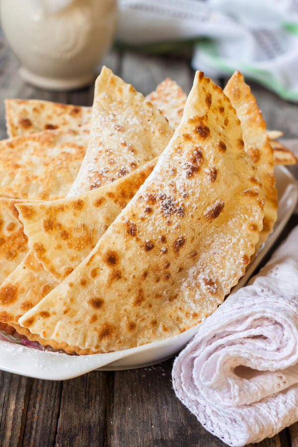 Для теста: 350 г пшеничной муки, 90 г сливочного масла, 1 столовая ложка сахара, 1 яйцо, 75 г молока или сливок, 30 г сметаны, 1/2 чайной ложки соли, 1/4 чайной ложки соды. Для начинки: 1 кг яблок, 2 столовые ложки сахара. Для смазывания поверхности пирога: 1 желток. Масло растопить, добавит молоко или сливки, сметану, яйцо, сахар, соль, хорошо перемешать, затем добавить муку, смешанную с содой. Тесто раскатать в виде круглой лепешки толщиной 1 см. На одну половину лепешки ровным слоем положить нарезанные тонкими ломтиками яблоки, посыпать сахаром, покрыть яблоки другой половиной теста, аккуратно защипить края пирога, придав ему форму полумесяца. Пирог наколоть вилкой, смазать желтком, украсить веточками, цветками, листиками из теста. Дать пирогу время для расстойки 10-15 минут и выпекать при температуре 180-200 градусов до золотистого цвета.