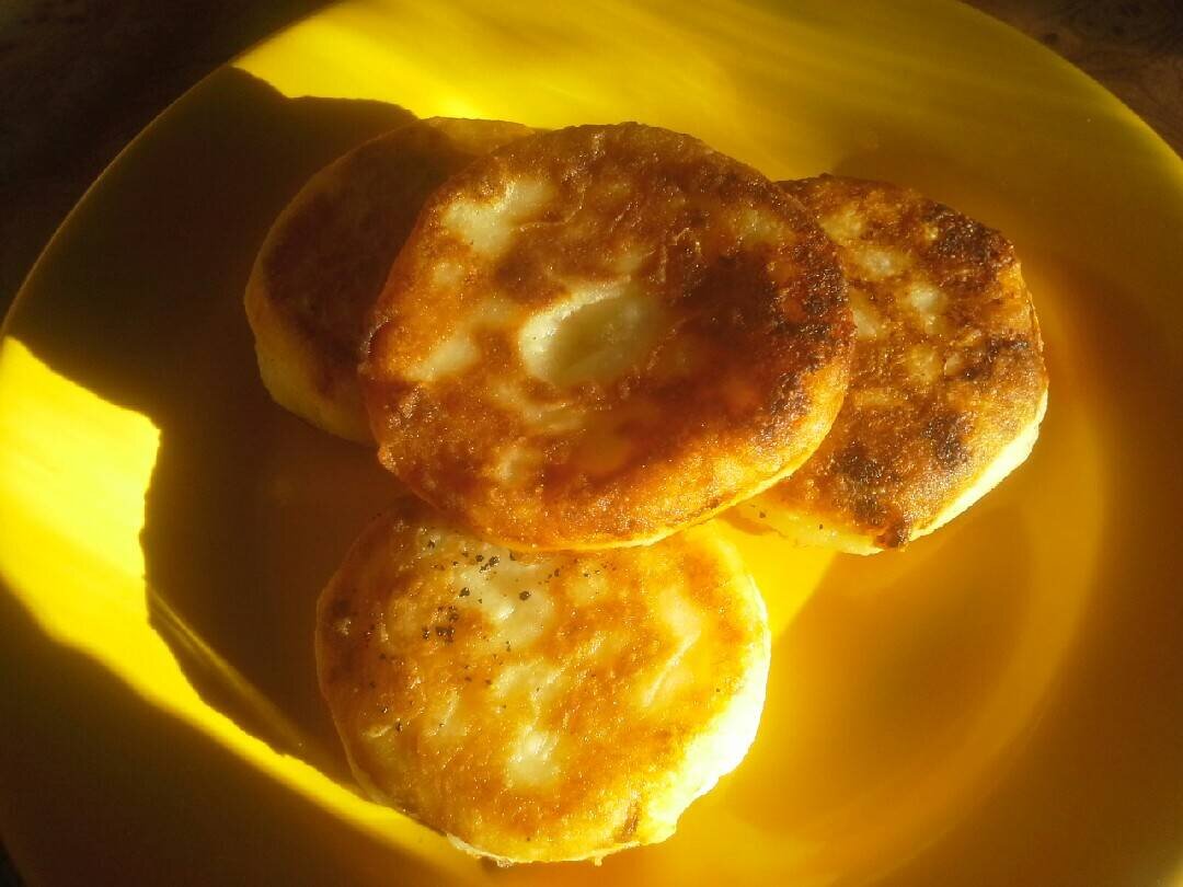 Ингредиенты: творога, манной крупы, сахара, Ваниль, крупное яйцо, Изюм, муки, Можно шоколад для начинки, Сметана для подачи при желании Способ приготовления: Творог растереть с сахаром, ванилью, яйцом и манной крупой. Дать постоять 30 минут, разделить на шарики чуть крупнее грецкого ореха, обкатать в муке, расплющить, жарить в растительном масле, на среднем огне с двух сторон. При желании добавить изюм, курагу, чернослив или внутрь кусочек шоколада, вареного сгущенного молока. Подавать можно со сметаной.