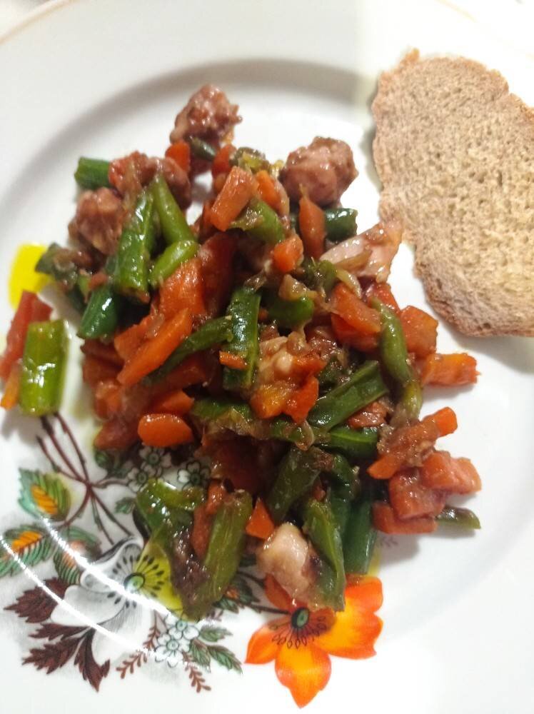 Сочная поджарка из нежного филе куриного бедра с любимыми овощами. Можно кушать как самостоятельное блюдо, так и с любым гарниром. Наслаждайтесь вкусом 💛🧡💚 #курица Ингредиенты: филе куриного бедра, лука, морковь, замороженной зелёной фасоли, Соевый соус , Приправа зира, Масло растительное для жарки Способ приготовления: Обжарить лук, морковь до готовности, затем добавить филе бедра, приправить зимой, снова обжарить до готовности мяса. Добавить зелёную фасоль, заправить соевым соусом, перемешать, накрыть крышкой и тушить до готовности фасоли. Приятного аппетита 💕💕💕