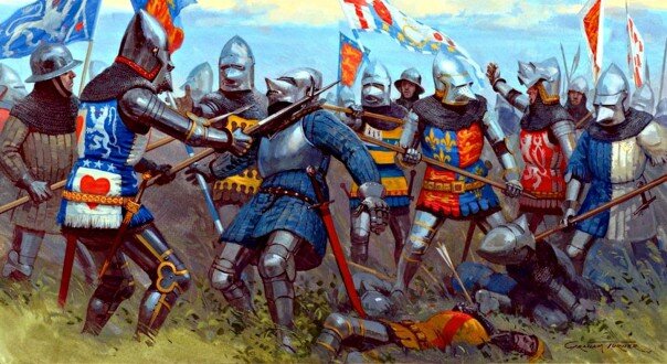 Столетняя война протекала для англичан не так легко, как может показаться дилетанту - мол, беспечные английские лучники постреливали себе по глупым французам, благодаря чему они побеждали армии с гораздо большим перевесом (как говорится, пиши больше, что их, бусурман, жалеть) Проблемы были и до, и после Пуатье, а во время перемирия и после проблем и вовсе прибавилось - кроме того, что даже сами французы решались высаживать десант на территории Англии, так еще и восстание Уота Тайлера, валлийцы... Ну и шотландцы, само собой! В памяти шотландцев уже тогда были не только победы при Баннокберне или Лаудон-Хилл, но и поражение при Калидон Хилл, где лучники Эдуарда Третьего смогли проявить себя. В 1388 году шотландцы и не думали успокаиваться - да какой там, на границах было неспокойно и при Елизавете Первой, например. Теперь они и не думали давать англичанам генеральное сражение - ждать, когда окопаются лучники, спешатся латники - ищите, что называется, дураков. Джеймс, второй граф Дуглас