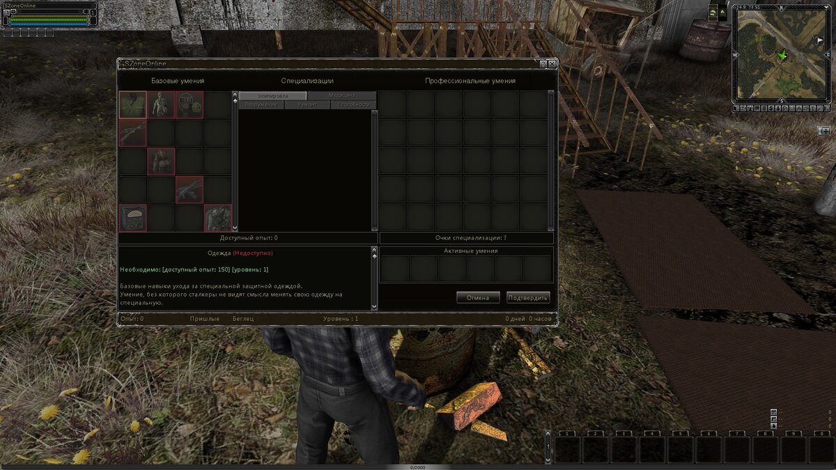 Базовые умения доступны всем сталкерам до выбора профессии. Приобретаются на доступные очки опыта, которые указаны слева, под столбцами. Дважды кликните по иконке доступного умения, чтобы изучить его. Если у вас достаточно очков, умение будет изучено.