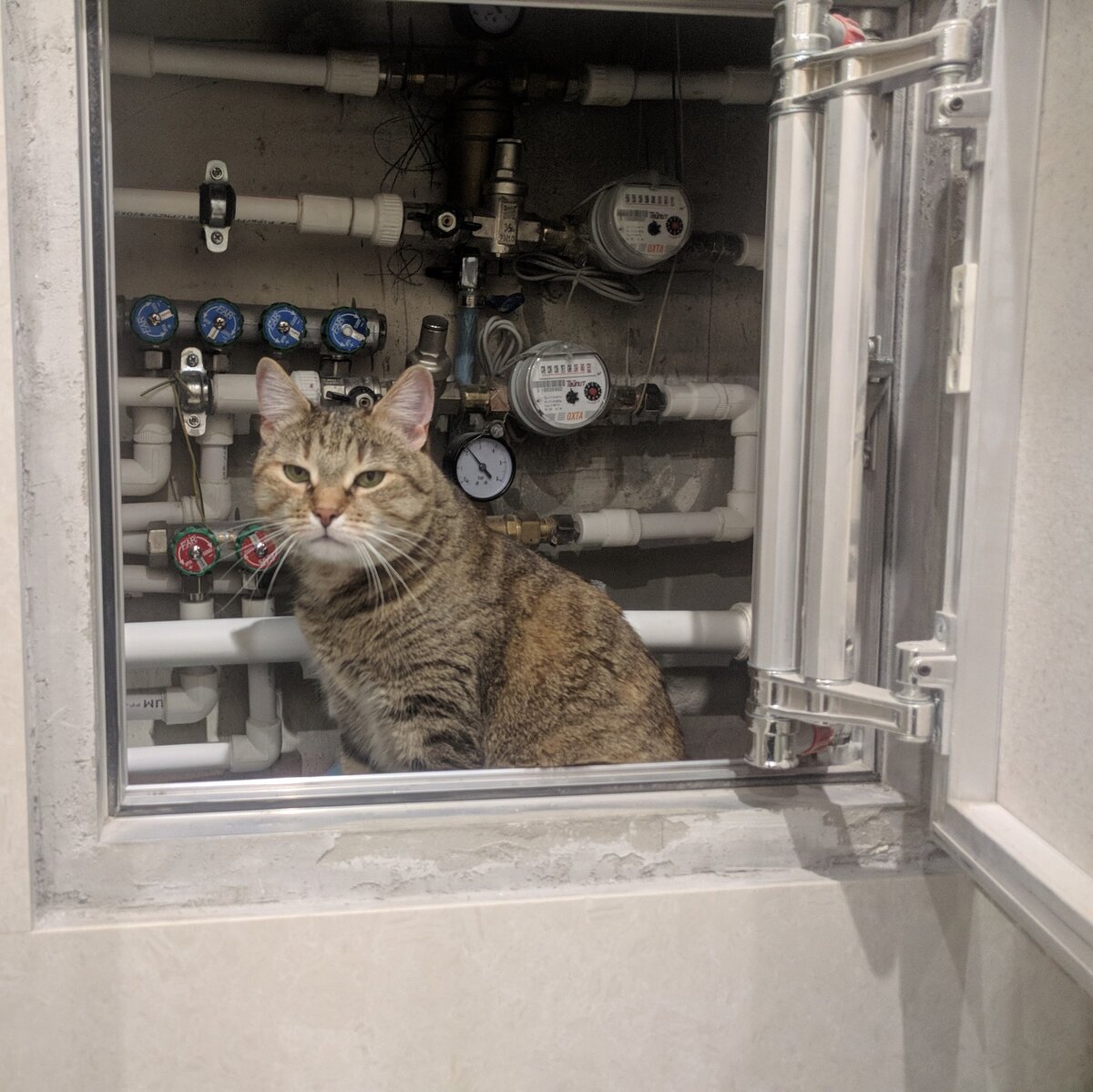 Недавно установили сан.тех. шкаф, так Васька с утра до вечера, вот уже третий день всё изучает и изучает! Что-то нюхает , что-то лапками трогает! Работает не покладая лапок;) А фоткаться он не очень любит, а также не любит когда его отвлекают 😅. Поэтому после того как сфотографировал, решил по-быстрому удалиться)) А как дома себя ведут ваши домашние животные? #сантехника #кошка #ремонтквартир