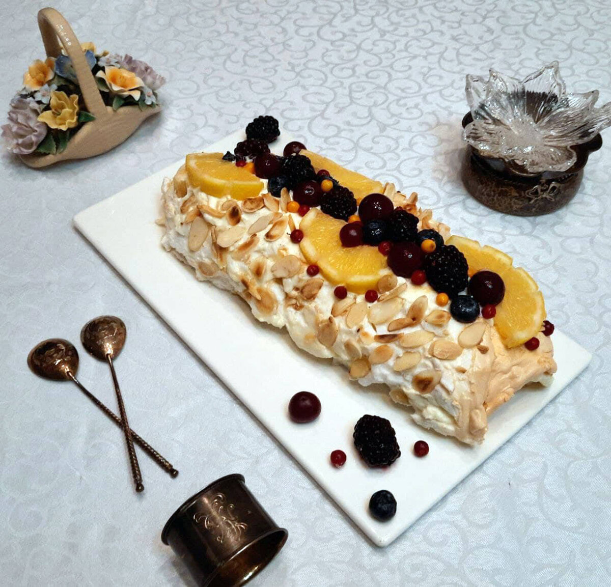#календар #ігри #франція Ингредиенты: Меренга:, белка, соли, сахара, лимонного сока, кукурузного крахмала, миндальных лепестков, Крем:, холодного крем - сыра, сливок (если менше 33 %, то + 1 п. загустителя), сахара, Голубика, вишня, брусника, облепиха, лимон для украшения Способ приготовления: Белки отделяем от желтков, добавляем соль и лимонный сок. Взбиваем миксером на небольшой скорости, добавляя сахар по ложке и постепенно увеличивая скорость. Взбиваем до устойчивых пиков. В конце добавляем крахмал и снова взбиваем. Выкладываем на пергамент или коврик для выпечки, разравниваем лопаткой. Сверху посыпаем миндальными лепестками и выпекаем в духовке при 150•C 20-25 мин. Достаем меренгу из духовки, сверху укрываем пергаментом, переворачиваем на решётку и снимаем коврик или пергамент. Остуживаем. Для крема перетираем сливки, сахар и сыр. Затем на остывшую меренгу наносим крем. 2-3 ст. л крема можно оставить для украшения рулета. Аккуратно сворачиваем рулет, заворачиваем в пергамент и отп