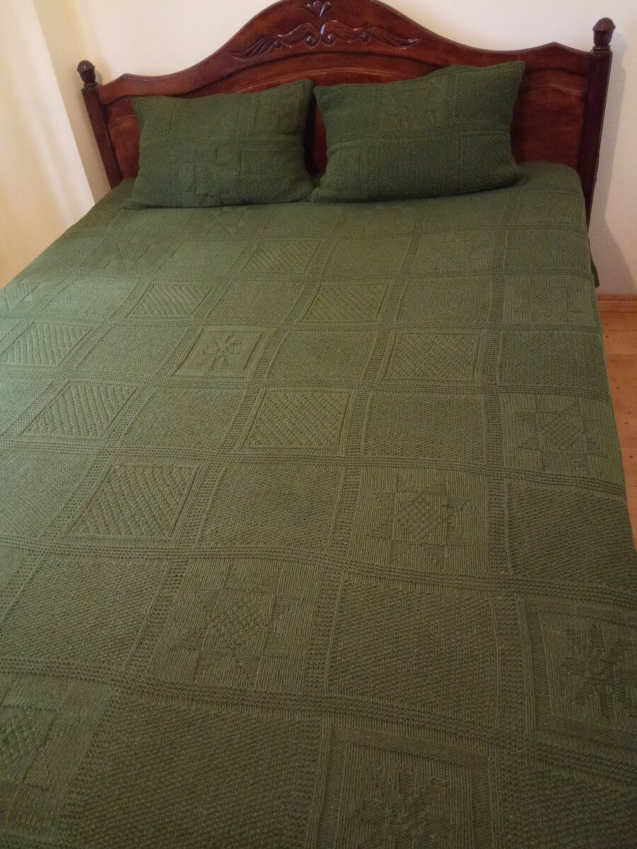 Вяжем спицами. Покрывало и наволочки в стиле пэчворк со схемами и описанием.