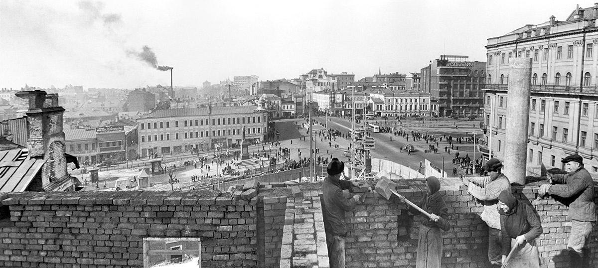 Понадергали материал из прессы 90-х, когда стали лить грязь на Советский строй и все, что с ним связано? Моя семья в это время ходила на работу, молодые рыли окопы под Москвой (в их числе был мой 14-летний отец), дежурили на крышах, сбрасывая зажигалки. Кстати, на первом снимке показан дом по улице Большая Дорогомиловская (часть Кутузовского проспекта) с пересечением улицы Раевского, где было оборудовано пулеметное гнездо. Не было такой ужасной паники, как вы описываете! Мои родные много рассказывали о том времени.
