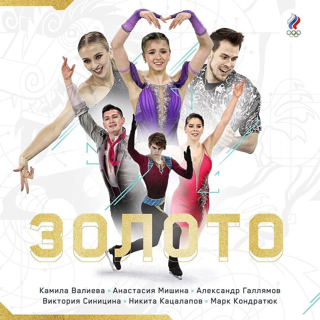 Российские фигуристы Виктория Синицина и Никита Кацалапов заняли первое место в произвольных танцах в командном турнире Олимпийских игр-2022. Таким образом, Синицина и Кацалапов принесли команде 9 очков. Россия после седьмого вида программы с 64 очками опережает идущую на второй строчке США на 6 очков и досрочно завоевала золотые медали, так как американцы не смогут догнать российскую команду в последнем виде.Сборная России по фигурному катанию досрочно победила в командном турнире Олимпийских игр в Пекине.За сборную России в командном турнире выступали Марк Кондратюк, Камила Валиева, Виктория Синицина и Никита Кацалапов, Анастасия Мишина и Александр Галлямов.В заключительном виде программы командного турнира Валиева получила первое место в произвольном прокате (178,92 балла), на втором месте – представительница Японии Каори Сакамото (148,66 балла), на третьем фигуристка из Канады Мадлен Скизас (132,04 балла).В активе российских олимпийцев две золотые, две серебряные и две бронзовые ме