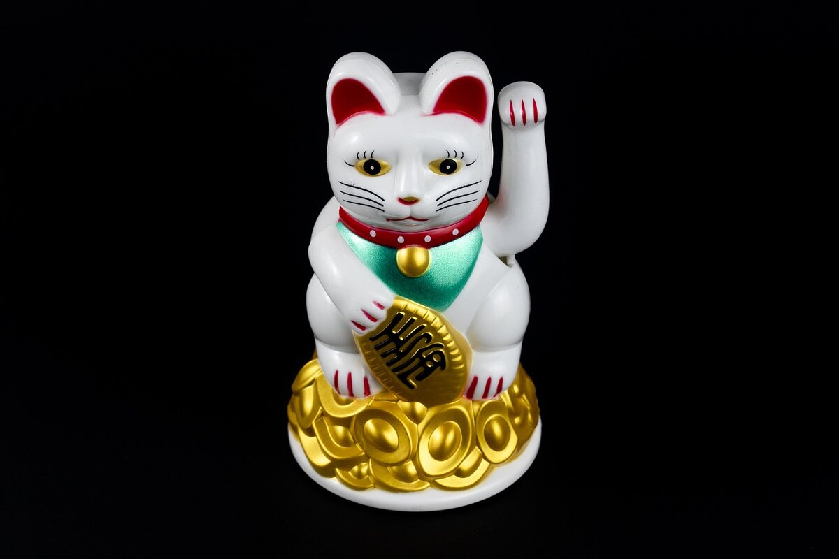 Манэки-нэко — легендарная кошка, почитаемая японского народа, в переводе на русский язык означает "манящий кот" или "зазывающая кошка". Еще про нее говорят: "кот счастья" или "денежный кот". Фарфоровая фигурка нарядной кошки распространена в Японии повсеместно, а европейцы заинтересовались забавной фигуркой совсем недавно. Как выглядит Манэки-нэко представляет собой фигурку кошки с поднятой вверх лапой. У некоторых статуэток лапа качается и машет. Обычно такую кошку ставят у входа в магазин или лавку. Примечательно, что поднятая вверх правая лапа привлекает деньги, а левая — удачу в делах. Предание монастыря Готокудзи Дело было в XVIIвеке. Однажды к храму подошел умирающий от голода больной кот. На улице в это время работа старый монах. Хотя монастырь был полуразрушен, а люди в нем жили тяжело и недоедали, старик пожалел бродягу и взял на свое попечение. Так вместе и жили, кот видел, как бедно и трудно живут тут люди, а помочь некому. Пушистый намотал это себе на ус. Через месяц случил