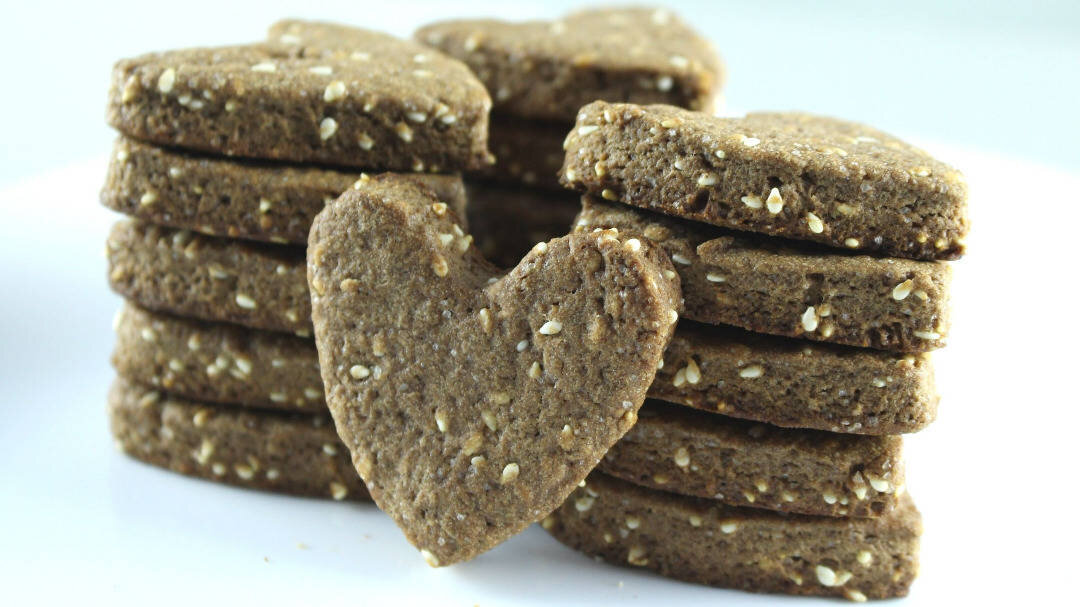 Приближается День Святого Валентина. В день влюбленных обычное печенье можно превратить в признание в любви, приготовив его в виде сердечек. Сегодня поделюсь рецептом быстрого шоколадного печенья, которое подойдет как для обычного чаепития, так и для романтического подарка. #валентинки Ингредиенты: муки, сахара, сливочного масла, какао - порошка, кунжута, яйца Способ приготовления: В миску выкладываем муку, сахар и охлажденное сливочное масло порезанное кусочками. Перетираем руками в крошку или можно воспользоваться кухонной техникой. Добавляем какао и кунжут, снова перемешиваем. Какао лучше просеять, чтобы не было комочков. Вбиваем 2 яйца, перемешиваем сначала лопаткой, затем замешиваем руками. Тесто получается мягким и совсем не липнет к рукам. Раскатываем тесто в пласт примерно 2 см. толщиной. Вырезаем формочкой в виде сердечка и аккуратно перекладываем на противень. Выпекаем при температуре 180 °С 10-15 минут, с учётом особенностей Вашей духовки. Печеньки получаются сухими и рассып