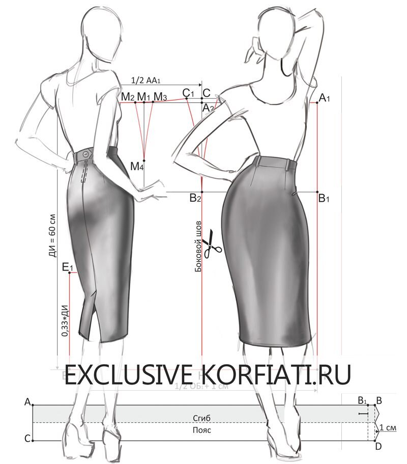 -Длина изделия (ДИ). Пошаговое построение выкройки юбки