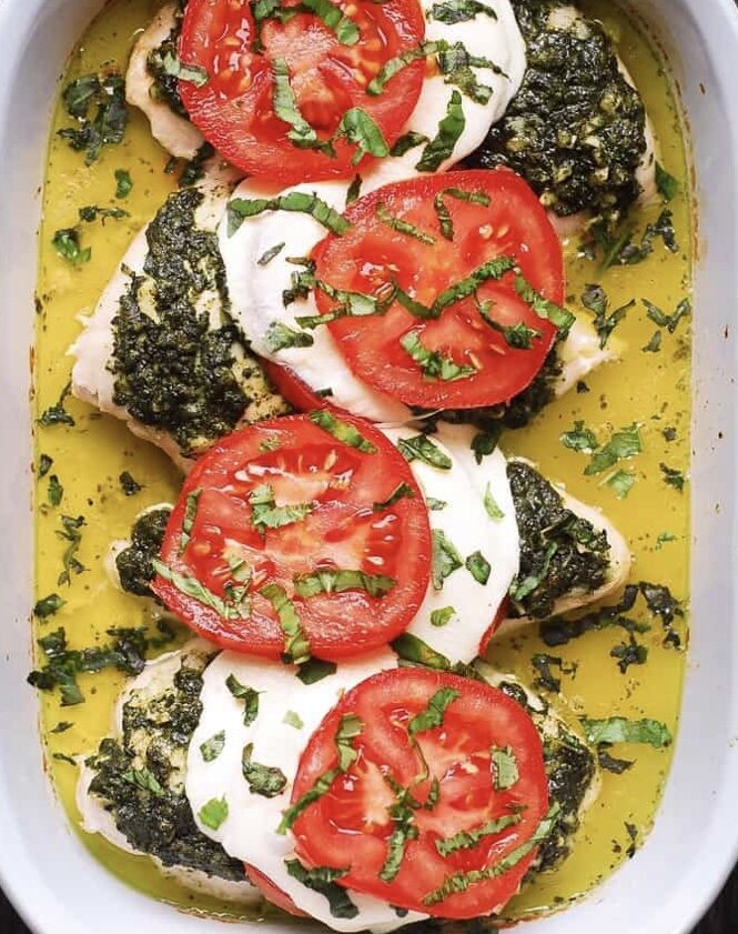 Вкусно по - итальянски. Курица Запеченная под соусом песто с помидорами и моцареллой.