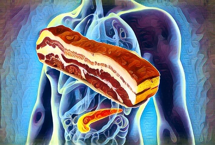 Всем привет! Вы на канале «Здоровый Дух», и сегодня говорим о сале – продукте, который может быть как полезным так и опасным для организма. Одним из органов, у которых с салом не совсем простые отношения, является поджелудочная железа. Сало организму необходимо, но… На протяжении многих веков славянские (и не только) народы не могли обходиться без этого продукта. Да и в доисторические времена животный жир был ценным источником жирных кислот (особенно арахидоновой, необходимой мозгу и другим жизненно важным органам) и микроэлементов. Употребление сала повышает иммунитет и помогает защищаться от вирусов. Оно необходимо для образования некоторых важных гормонов. Участвует в обмене холестерина (напомню: полезный холестерин нужен клеточным стенкам, без них нарушится их целостность). Любопытно то, что при кратковременном нагревании пищевая ценность свиного сала повышается за счет увеличения жирных кислот (арахидоновой, стеариновой и олеиновой). Хоть жарка и вредный способ приготовления пищи