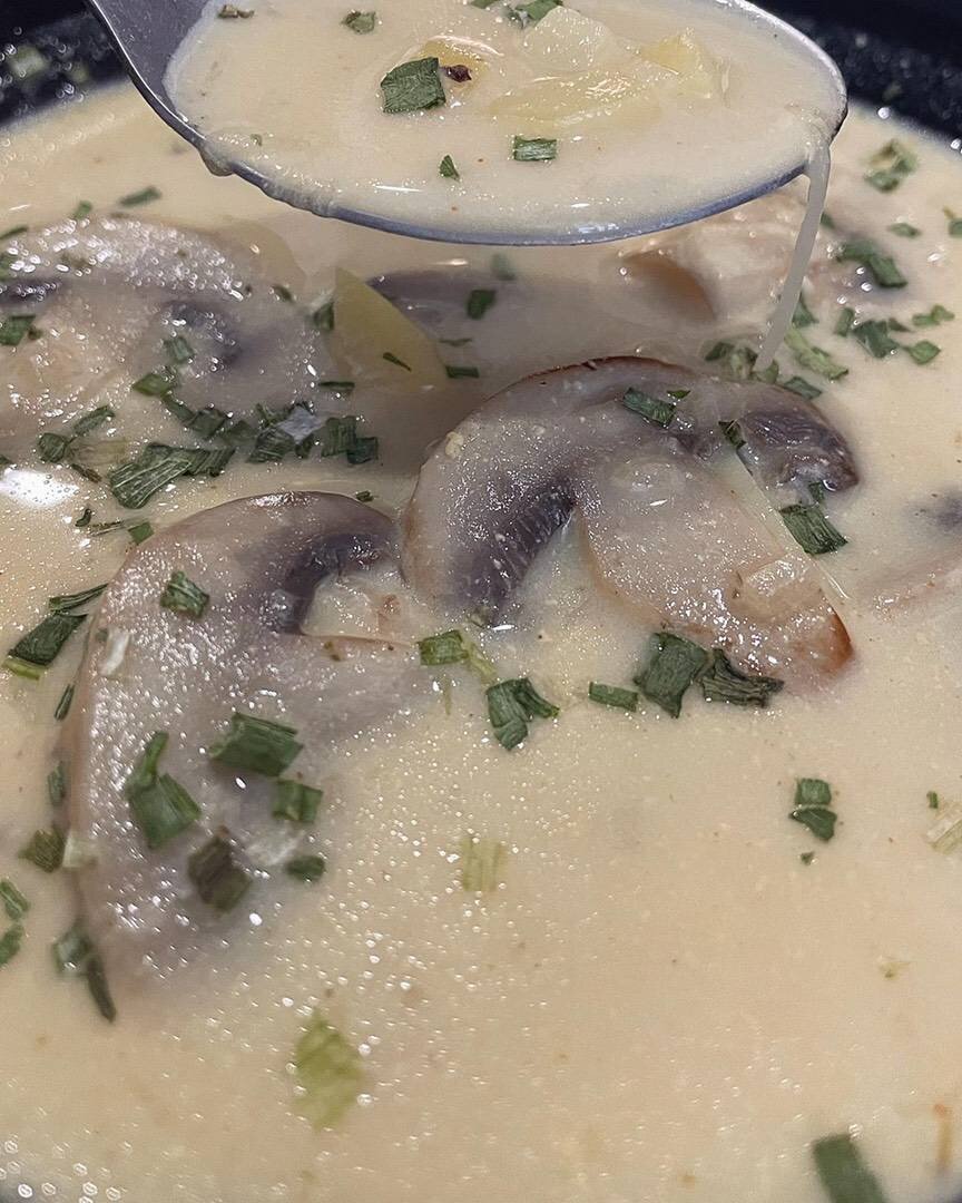Ингредиенты: шампиньонов, крупных картофелины, плавленых сырка, луковица среднего размера, горячей воды, соль, зелёный лук, папика, базилик 🌿 Способ приготовления: Лук мелко режем и обжариваем прямо в кастрюле на среднем огне на одной чайной ложке растительного масла. Через три минуты добавляем к луку шампиньоны, увеличиваем мощность плиты и обжариваем ещё 3 минуты регулярно помешивая, чтобы ничего не пригорело ко дну кастрюли. Сначала добавляем немного соли и остальные специи, потому что плавленые сырки сами по себе солёные, лучше попробовать и до солить в конце по вкусу, при необходимости. Заливаем лук, грибы и специи горячей водой, добавляем целиком два сырка и размешиваем до их полного растворения. Картофель режем мелким кубиком и отправляем в кипящую кастрюлю. Варим под крышкой 15 минут. При подаче, посыпаем суп зеленью. Приятного аппетита 😋! ♥️✨