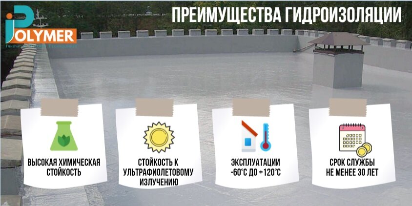 Каждое здание и строение имеет два самых уязвимых к влаге элемента – фундамент и крыша. Некачественно выполненная гидроизоляция не только потребует переделки, но также может стать причиной ремонта декоративной отделки или даже замены перекрытия кровли. Одним из самых надежных материалов сейчас считается жидкая резина. Рекомендуем обращаться к непосредственным производителям изоляционным материалов, если Вы решили купить гидроизоляцию для крыши. 1. Сокращение времени ремонта – при нанесении гидроизоляционной мастики не требуется демонтировать старое покрытие. 2. Позволяет работать с любым рельефом и конфигурацией поверхности. 3. Напыление изоляционного шара жидкой резины позволяет покрывать все примыкания, углы, трещины, воронки, трубы и прочие сложные участки гидроизолируемой поверхности. 4. Полученный материал способен выдержать линейное расширение без разрушения до 1200% с последующим восстановлением первоначальных размеров до 95% после снятия нагрузки. 5. Срок службы гидроизоляции к