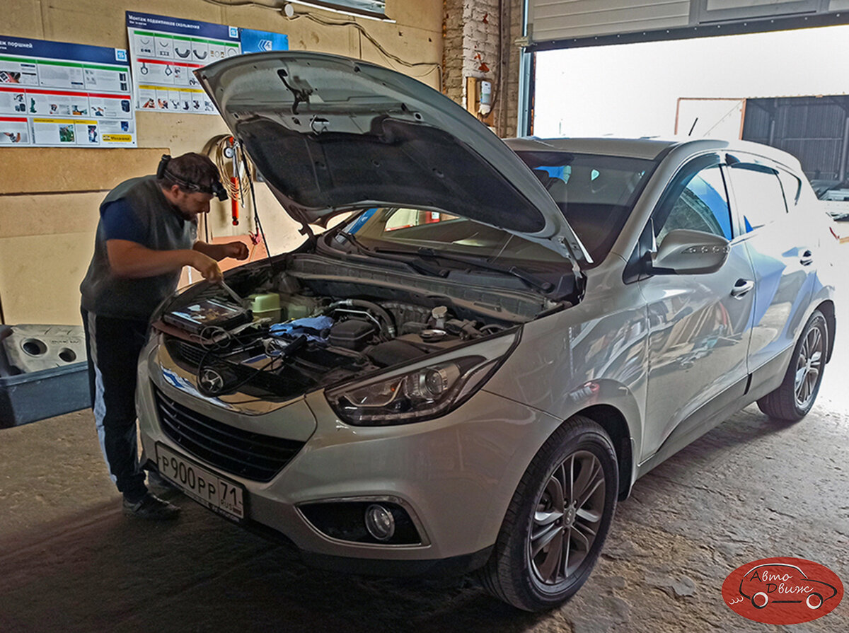 А вот, собственно, и финальная стадия - полностью собранный мотор на стенде и под капотом Hyundai iX35: