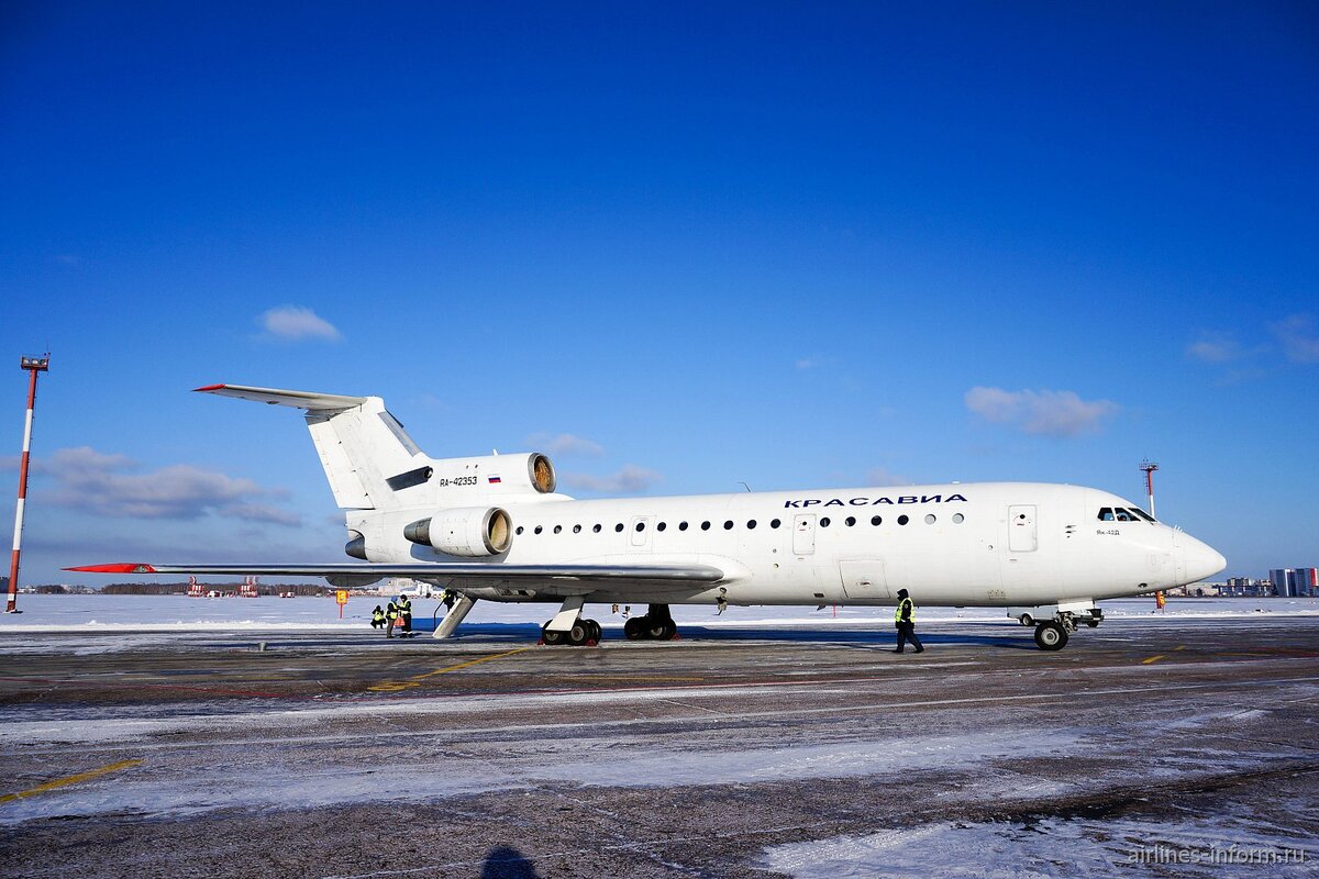 Приветствую всех на своём канале! Вы летали когда нибудь на Як-42? Если нет, то я вас приглашаю посетить Як-42 авиакомпании Красавиа. В 2016 и 2017 году мне посчастливилось несколько раз полетать данным типом самолёта. Честно говоря я нисколько не жалею об этом, мне понравились эти полёты. Давайте отправимся в воспоминания одного из этих полётов. Для начала совсем немного исторической справки: Самолёт был разработан в середине 70х годов, для замены ТУ-134 и ИЛ-18. Первый опытный самолёт был произведён в конце 1974 года. Впервые же был представлен широкой публике в Ле-Бурже в 1977 году. Тогда же и началось серийное производство самолёта. В 1980 году ЯК-42 начал выполнять первые пассажирские перевозки. Всего было выпущено 183 самолёта. Данный полёт был совершён на самолёте с бортовым номером RA-42353.