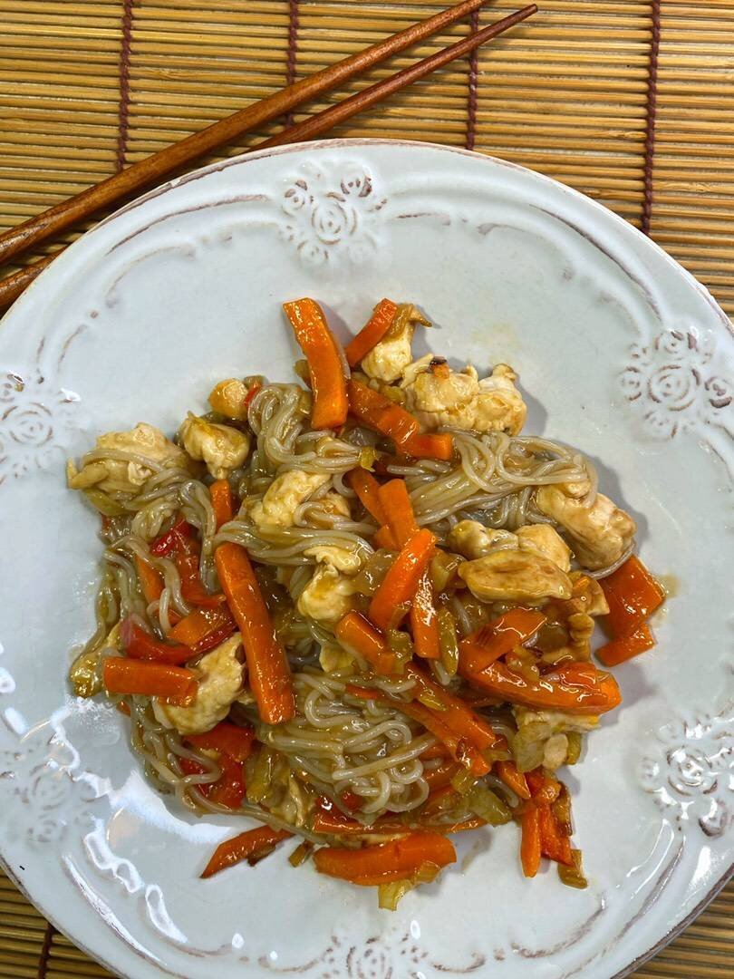 Вок с курицей и рисовой лапшой - быстрый ужин