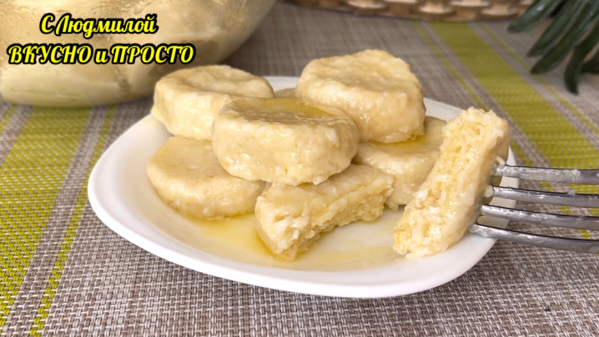 Сегодня у меня для вас, казалось бы обычный (но не совсем!!!) рецепт ленивых вареников. Это мой удачный эксперимент!!! Вареники вышли просто чудесные - нежнее чем классические, и вкус у них немного другой. Эти вареники - 100% ПП рецепт. А делать их как и обычные ленивые вареники - не больше 15 минут. Итак начнём. У меня творог домашний, вкусный, без лишней сыворотки. Здесь его 350 г. Добавляем к творогу 2 небольших яйца или 1 большое. Добавляем щепотку соли. А вот вместо обычной пшеничной муки и я добавляю в эти ленивые вареники по 2 ст ложки овсяной и кукурузной муки. Здесь можно использовать какой-либо один вид муки. Замешиваем ложкой тесто прямо в чаше. Тесто должно получиться как на обычные ленивые вареники: мягкое, слегка липнущее к рукам. Теперь немного подпыляем стол обычной пшеничной мукой и окончательно собираем тесто. Делим тесто на 2 равные части. Раскатываем каждую часть в колбаску толщиной 2,5 - 3 см и режем её на небольшие кусочки. Каждый кусочек теста обваливае