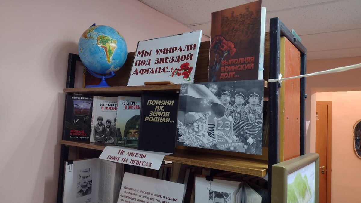 посвященной 15 февраля - годовщине со дня вывода войск из Афганистана, к 23 февраля - Дню защитников Отечества В феврале 1989 - го советские войска уходили из Афганистана. Они выиграли свою войну. Но многого тогда еще не знали. Не знали, что через два года исчезнет страна, за которую они воевали, и станет немодным носить ордена вымершей державы. Что еще много лет большие люди где-то там, наверху, будут спорить, нужна ли была эта война или нет, и решать за них, кто прав, кто виноват. Они не знали, что раненого Усаму вынесут из боя «черные аисты», и однажды через много лет все мы снова услышим про него и впервые увидим нашего врага в лицо на телеэкране. 8 февраля 2022 года, в преддверии годовщины со дня вывода войск из Афганистана и Дня защитника Отечества, в библиотеке «Фолиант» начала работу книжная выставка-инсталляция «Мы умирали под звездой Афгана…» Разделы выставки говорят сами за себя: «Не ангелы поют на небесах», «Когда ошиб