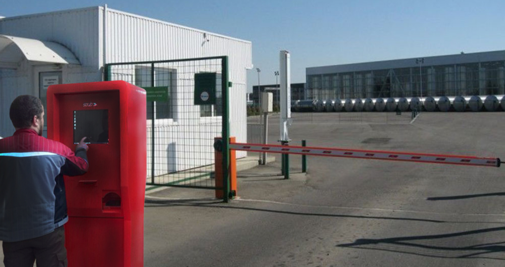 Водитель подъезжает к КПП. На входе – автоматические ворота и терминал, на котором нужно ввести номер автовизита, отсканировать ранее полученный пропуск и проехать на территорию предприятия.