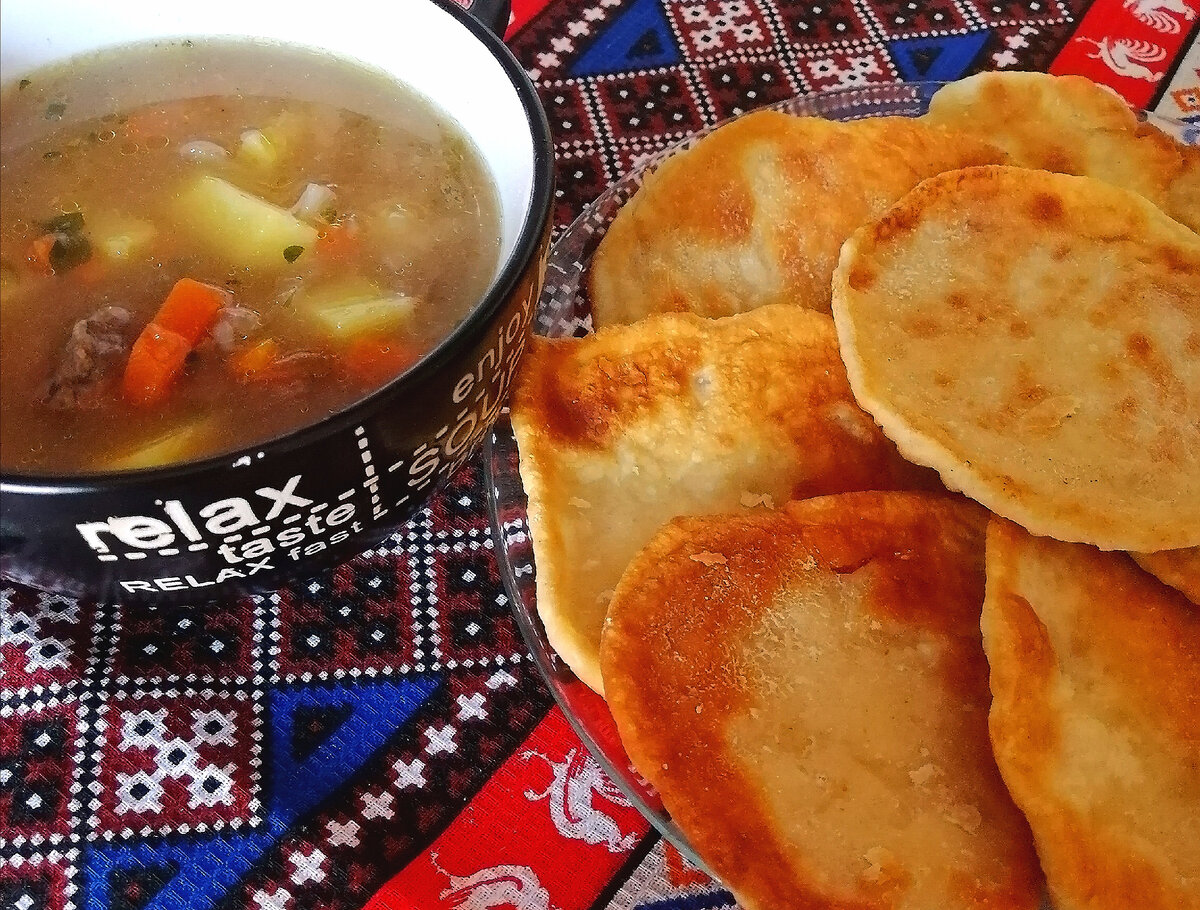Всем привет✌️ Сегодня раскажу как готовила суп с козлятиной и ещё сделала к нему лепешечки🙂 Козлятину я готовила первый раз, как с ней обращаться на знаю поэтому импровизировала. Мясо я порезала на кусочки. В казан налила растительное масло, закинула мясо и начала обжаривать. Добавила лук, морковь и чеснок. Затем добавила томатной пасты 2 столовые ложки. Специи можно добавить любые, я взяла соль, перец и молотый кориандр. Все перемешала, залила одним стаканом воды и оставила тушиться. Воду в процессе доливала. Мясо жёсткое, тушила примерно час. Потом добавила картофель, ещё воды и варила до готовности. Хлеба не оказалось, решила сделать лепешки к супу. Взяла 1 яйцо, молоко примерно 4 столовые ложки, соль и мука. Замесила тесто, оставила минут на 20-30. Затем раскатала лепешки и обжарила с двух сторон на разогретой сковороде. Лепешки получились вкусные, нежные. И суп готов👍 Приятного аппетита🙂