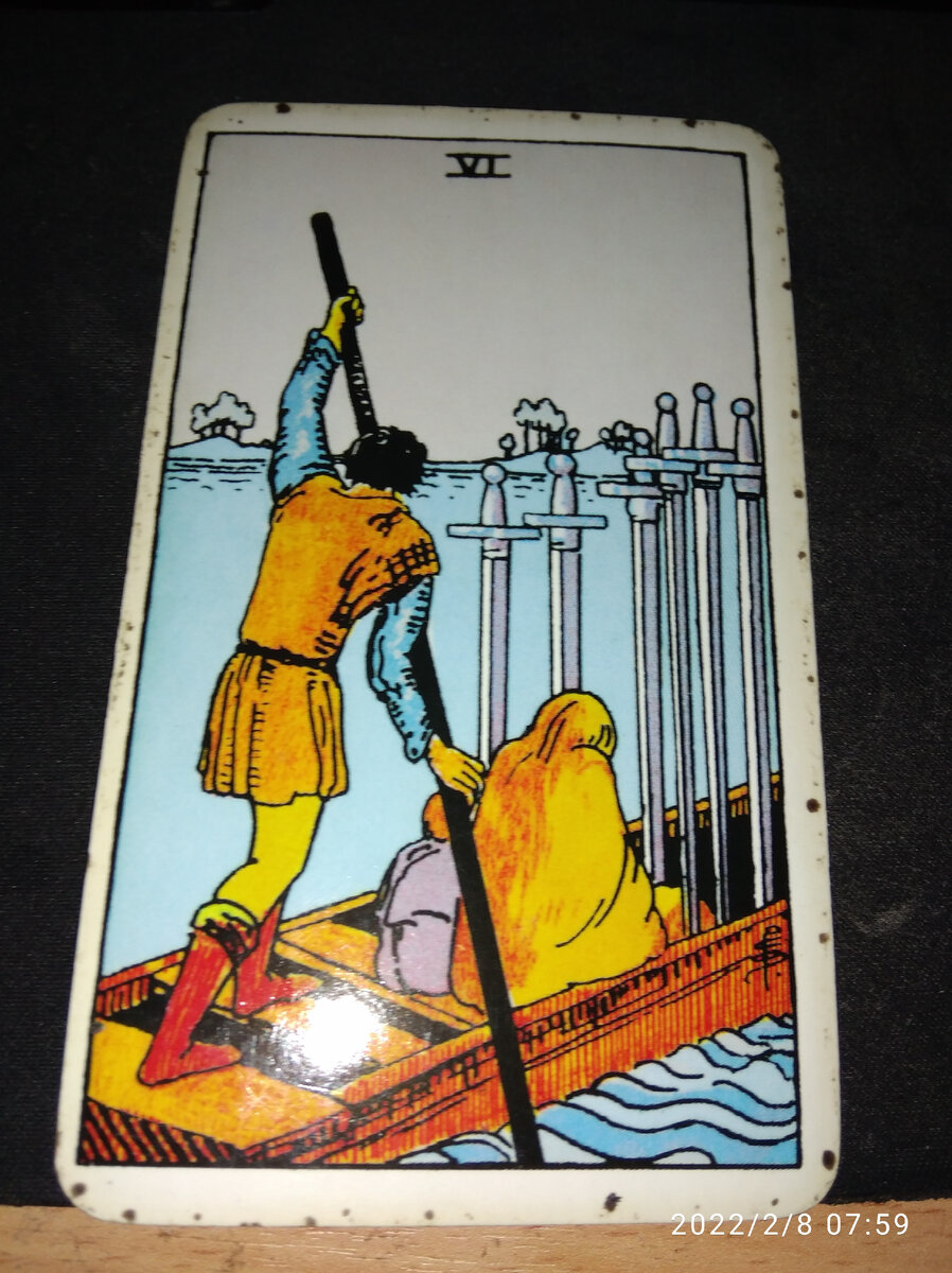 Сегодня выпала 6 Мечей,вижу что вас ждёт долгая и тяжёлая дорога. Вероятно что вас пошлют в длительную командировку которая может затянуться на неопределенное время. Возможно что вас могут перевести работать в другой филиал организации где придется долгое время вливаться в новый коллектив и искать с ним контакты. Может быть что к вам могут приехать дальним родственники или вы сами поедете к ним. Вижу так же что вы сможете отправиться к какое нибудь путешествие или отдых в какой нибудь санаторий. Возможно что вы запланируете возможный переезд на новое место жительство с целью улучшения своего социального положения. Вероятно что у вас появятся срочные и неотложные дела которые нужно будет решать в спешном порядке.