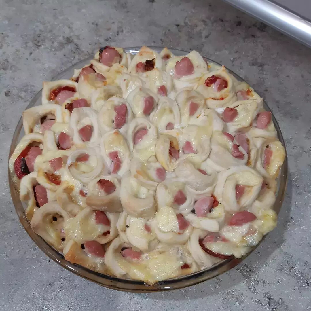 Сытный и очень вкусный пирог можно приготовить буквально за 1 час. И для этого не обязательно возиться с тестом и готовить сложные начинки. Нам потребуется лишь упаковка покупного слоёного теста, сосиски, сыр и вяленые помидоры, а в итоге получаем необычный и красивый пирог, который отделяется порционно ( отсюда и название). #игры Ингредиенты: слоёного теста, Сосиски, Вяленые помидоры, Сыр, Обжаренный лук Способ приготовления: Слоёное тесто (у меня бездрожжевое) размораживаю и немного раскатываю. Нарезаю тесто на небольшие треугольнички. На каждый треугольник выкладываю вяленую помидорку, половинку сосиски, кусочек сыра и немного обжаренного лука. Заворачиваю тесто вокруг сосиски, получается мини конвертик. В круглую, не глубокую форму для запекания выкладываю конвертики из теста и сосисок. Можно взять любую форму или сделать конвертики побольше - это уже полёт фантазии и дело вкуса. Выпекаю пирог при 180 градусах, 40 минут (духовка должна быть хорошо разогрета). Такой пирог обязательн