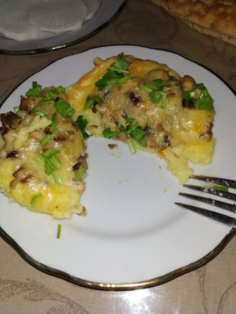 Ингредиенты: ОСНОВА:, Картофельное пюре 🥔 , Яйца 🥚 , Мука 🌾 (рисовая или пшеничная мука), НАЧИНКА:, Куриное филе 🍗 , Грибы шампиньоны🍄 , Соль 🧂 и перец 🌶️ , Подсолнечное масло для жарки 🍶, Сыр Голландский 🧀 Способ приготовления: Картофель отварить в подсоленной воде и перемять, сделать картофельное пюре. К пюре добавить яйца, просеять муку, перемешать, должно получится густое типа тесто. Сформировать шарики одинакового размера, ✅ смочите руки растительным маслом, чтобы масса не прилипала к рукам. Форму застелить пергаментом, переложить картофельные шарики и сделать внутри лунку. Для начинки куриное филе нарезать мелкими кубиками. В сковороде разогреть масло и отправить филе, накрыть крышкой и тушить мясо в собственном соку до испарения сока. После как сок испарится, обжарить до легкого золотистого цвета. Далее добавить грибы так же нарезать на мелкими кубиками, соль, перец чёрный и потушить 3-5 минут. Этой начинки начиняем картофельные шарики. Сыр натереть на мелкой тёрке и вы