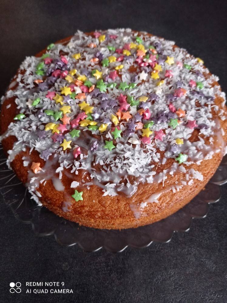 #меню Ингредиенты: борошно пшеничне, масла, цукру, яйця, розпушувача, цедра лимона, сік лимонний, сіль Способ приготовления: У миску додати лимонну цедру,цукор і сіль.Суміш добре перемішати,в окрему миску додати м'яке масло збити міксером до білої консистенції. У збите масло додати цедру з цукром.Збити суміш у пишну масу.В окремій мисці збити яйця. Потім збиті яйця добавляєм в суміш, лимонний сік, збиваємо. Далі додати розпушувача і просіяне борошно збити до однорідної консистенції. Форму змастити маслом, викласти у форму підготовлене тісто.Випікати при температурі 180 градусів 40 хв. Зверху полити згущонкою, посипати кокосовою стружкою.