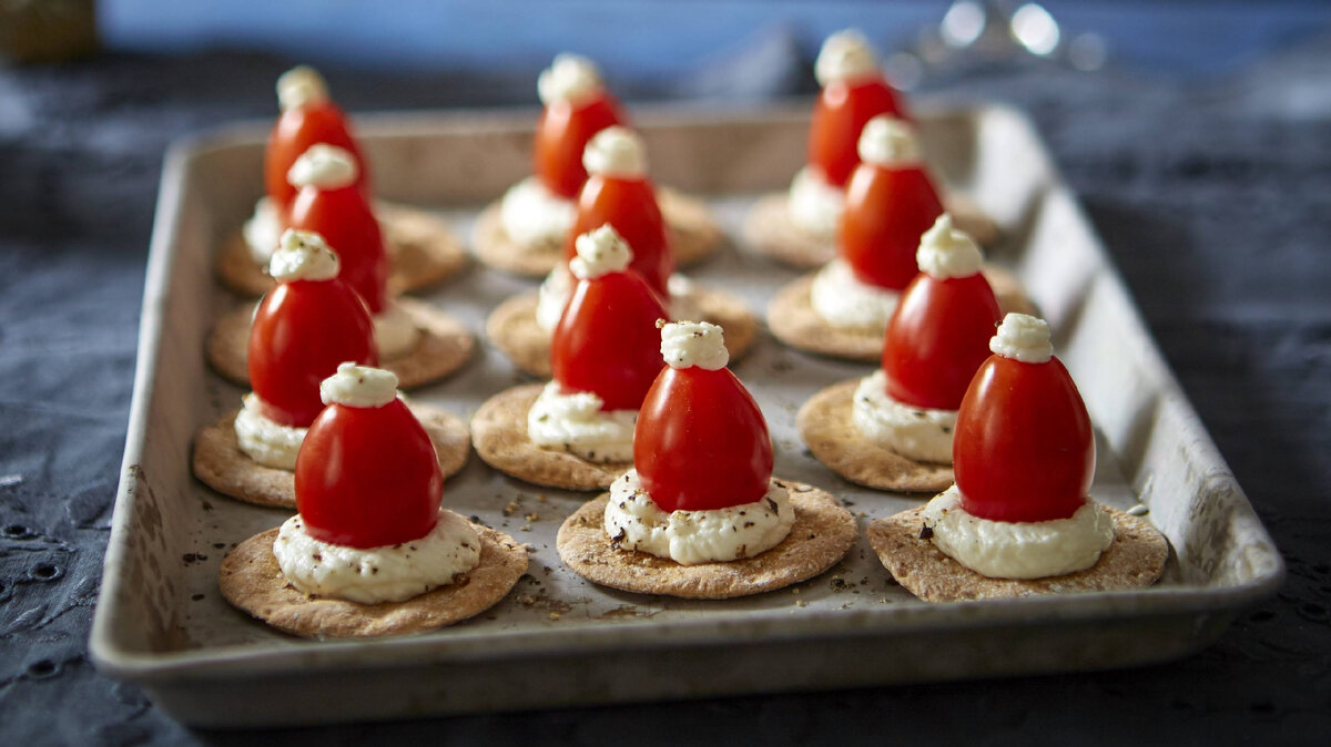 Канапе с помидорами черри и моцареллой.