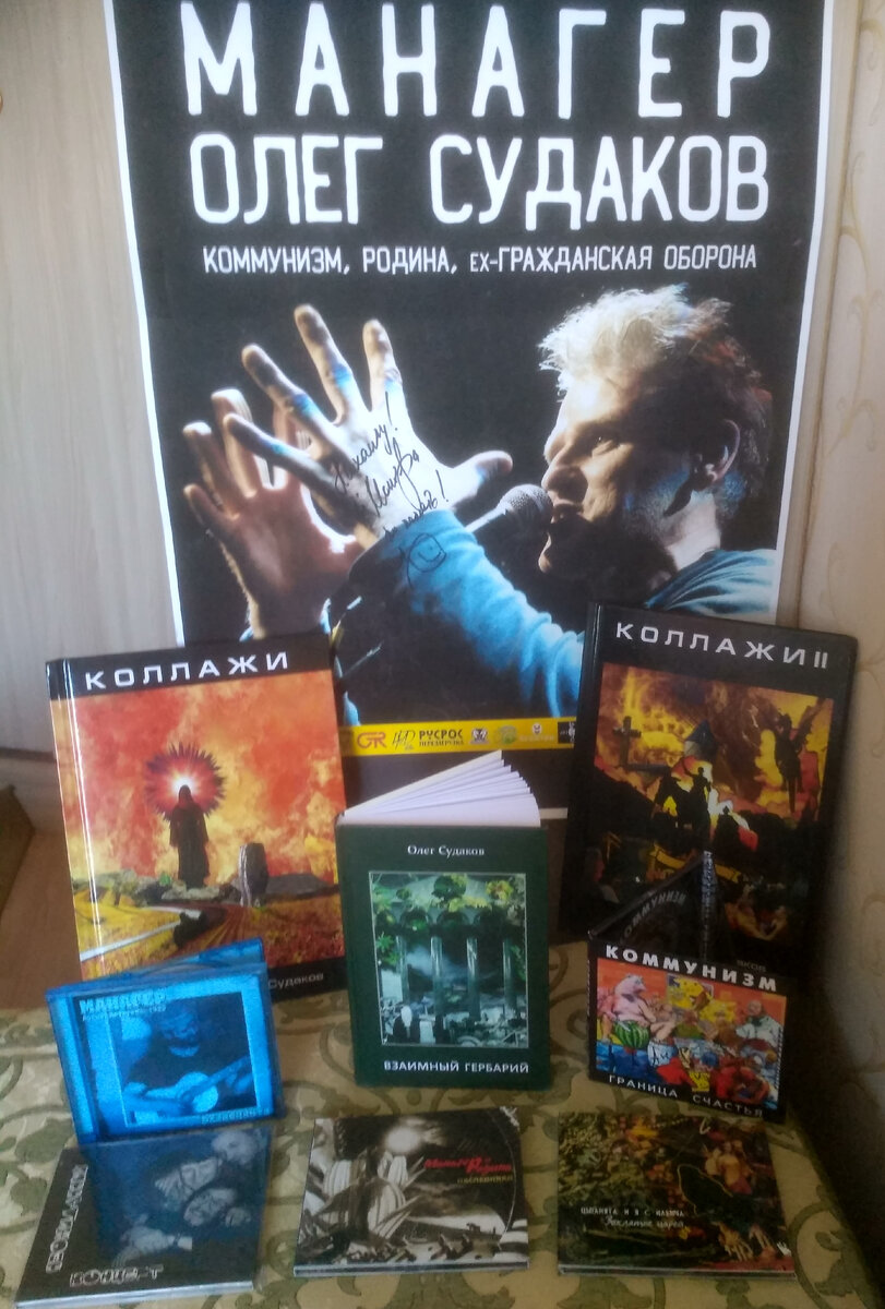 Все это нашло воплощение в вышедшей в 2019 г. пока единственной книге Олега Судакова «Взаимный гербарий». В ней автор предстает в разных ипостасях своего творчества. Стихи с 1983 по 2000 г. показывают творческую эволюцию от наивного мечтателя к жесткому бунтарю. Тексты песен, вошедшие в пять альбомов группы «Родина» открывают новые грани видения мира, показывая, что тоталитарная диктатура постоянно приобретает новые формы и все больше врастает в нашу жизнь. Еще в сборнике есть такая глава под названием «Афоризмы». В емких предложениях собраны ответы на те вопросы, который каждый мыслящий человек задает себе каждый день. Причем предтечу этих самых афоризмов можно увидеть еще в ранних стихах автора. Таким образом замыкается творческий и мировоззренческий круг Манагера. Ну и, конечно, статьи. По одной на каждый год с 2006 по 2012. В них Олег Судаков таким своеобразным образом говорит о главном: о том, что такое коммунизм, о принципах русской государственности, о церковном кризисе, о роли русских в современной России, о идеологии освобождения, о патриотизме. И, конечно, о Егоре Летове и «Коммунизме». Это все часть современного бытия. Пусть часто в этих статьях Манагер показывает картину, которая может шокировать неподготовленного читателя, но это все часть того, что происходит вокруг.