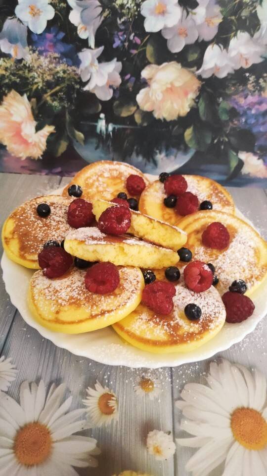 #оладьинакефире #лента Оладьи на кефире🥞всегда пышные, супер воздушные и любимый завтрак с детства❤. Этот рецепт ПП, но вы с лёгкостью можете заменить муку и добавить сахар. Ингредиенты: яйца, кефира, муки рисовой, разрыхлителя, подсластитель , масло для жарки Способ приготовления: Яйца взбиваем с подсластителем. Добавляем тёплый кефир и перемешиваем. Частями вводим муку с разрыхлителем, замешиваем тесто. Сковороду разогреваем и смазываем маслом. Ложкой выкладываем тесто и выпекаем под крышкой с двух сторон. Приятного аппетита❤.