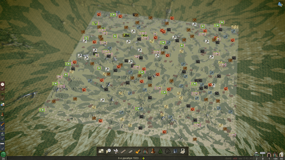 Давно мне не попадались железнодорожные симуляторы, которые затянули бы на несколько часов. В отличие от других ЖД симуляторов, которые предлагают взять под контроль поезд и доставить его из пункта А в пункт Б. Парочку таких симуляторов даже рассматривал тут у себя. Однако этот симулятор, который был выпущен ещё в 2018 году, судя по стиму, предлагает нам окунуться в развитие свое железнодорожной (на самом деле транспортной, но больше буду делать упор на жд перевозки, ещё есть автомобильные) компании. Если сравнивать из уже знакомых подобных симуляторов, то отмечают Transport Tycoon и ему подобные. Я не играл, поэтому сравнивать с чем-то похожим не буду, а лишь покажу что именно представлять из себя игра. Когда вы запускаете игру, вас просят выбрать какая по размерам у вас будет карта, я выбрал самую большую и получил местность: Как мы видим, на карте есть города и всякие предприятия но совсем нет никакой дорожной структуры, а на дворе 1920-ые. Нас сразу же учат как создать первую жд ст