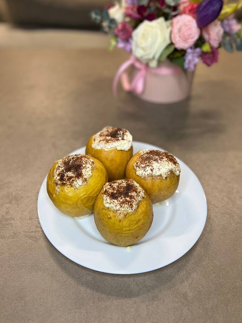 Простой и вкусный рецепт печеных яблок с творогом. Лично мне больше всего нравится этот рецепт с яблоками Гренни Смит. Сочетание кислых яблок, сладкого творога и корицы – вообще 🔥 Ингредиенты: средних яблока, обезжиренного творога, яичного белка, Подсластитель , Корица Способ приготовления: В яблоках удаляем сердцевину со стороны хвостика так, чтобы не повредить его у основания. В миске смешиваем творог, яичный белок и сах. зам. В подготовленные яблоки чайной ложкой плотно выкладываем начинку. На застеленный бумагой для выпечки противень ставим яблоки. Сверху посыпаем корицей. Отправляем в разогретую духовку до 180 градусов на 20-25 минут. Достаём, даём остыть и можно кушать.