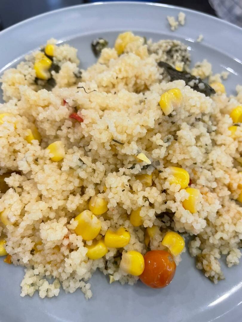 Очень вкусно и быстро! Ингредиенты: Кускус, Вода (кипяток), Помидоры (у меня замороженные Черри), Кукуруза замороженная, Перец острый (по желанию), Щавель (по желанию), Соль, прованские травы Способ приготовления: В глубокой сковороде разогреваем немного подсолнечного масла. Кладём нарезанные помидоры и острый перец. Солим. Добавляем прованские травы. Тушим 10-15 минут. Добавляем кукурузу и тушим ещё 10 минут. Кладём в сковороду шпинат и перемешиваем. Насыпаем кускус и заливаем кипятком. Снимаем с огня и даём настоятся 10 минут. Готово. Приятного аппетита!