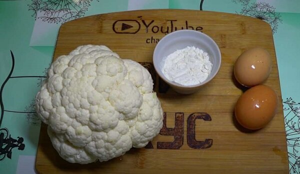 Сегодня мы будем делать жареную цветную капусту с яйцами Что нам для этого нужно Капуста цветная средний кочан, два яйца, одна столовая ложка пшеничной муки. Соль кому как нравится. Подсолнечное масло для жарки. Итак, начнём Берём нашу капусту и разделываем на соцветия. Вот на такими кусочками. Итак, нашу цветную капусту мы разделили на соцветия. Далее берём кастрюлю и наливаем воду, ждём, пока она закипит, и варим цветную капусту 6 минут. Вода в кастрюле начинает закипать, добавляем половину столовой ложки соли. Ложем в кастрюлю осторожно цветную капусту и варим 5-6 минут. Пять минут капуста по варилась, выкладываем ее на блюдо. Выложив цветную капусту, пока откладываем в сторонку. Берём миску и разбиваем в неё два яйца, добавив немножко соли. Перемешиваем яйца и постепенно добавляем муку и всё хорошо перемешиваем. Должна получиться однородная масса. Берём нашу цветную капусту и заливаем, полученной яичной смесью. Всё осторожно равномерно перемешиваем. Затем берём сковородку и ставим