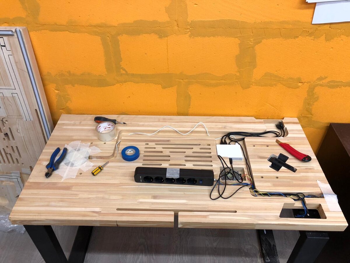 Прошло уже 1.5 года как я сменив душный офис и сферу недвижимости, перешел в разряд « а ля изобретатель». Что я такого сделал, ничего особенного, просто я захотел для себя комфорта за рабочим столом. Где все провода убраны и встроены зарядки и другие гаджеты, и это зашло слишком далеко! Начну с того что мой опыт в бизнесе около 9 лет, и только сейчас я нашел для себя любимое дело. Раньше когда слышал о любимом деле думал что фигня, для этого есть хобби… но я ошибался. Производство началось с маленького офиса в центре Питера, в 12 квадратных метрах, где ломали электронику и думали как все сделать красиво. Конечно на рынке есть одна компания которая уже 5 лет создавала умные столы, но мне ужасно не нравился материал столещницы ЛДСП покрытое шпоном. До сих пор ничего не изменилось и мы создаем только из массива дуба. Первый наш стол мы выпустили в декабре 2020 года, чего это мне стоило? Всего лишь Range Rover Velar пришлось продать, но все во благо. Конечно не обошлось без косяков, точнее