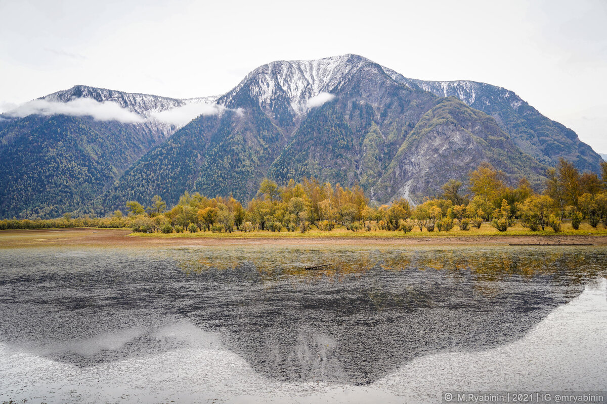 Перед впадением в озеро река Чулышман разделяется на два русла: первое - собственно сама река Чулышман, второе - протока Чебачья, рядом с которой образуются локальные водоемы и песчаная коса - идеальное место для стоянки лагерем.