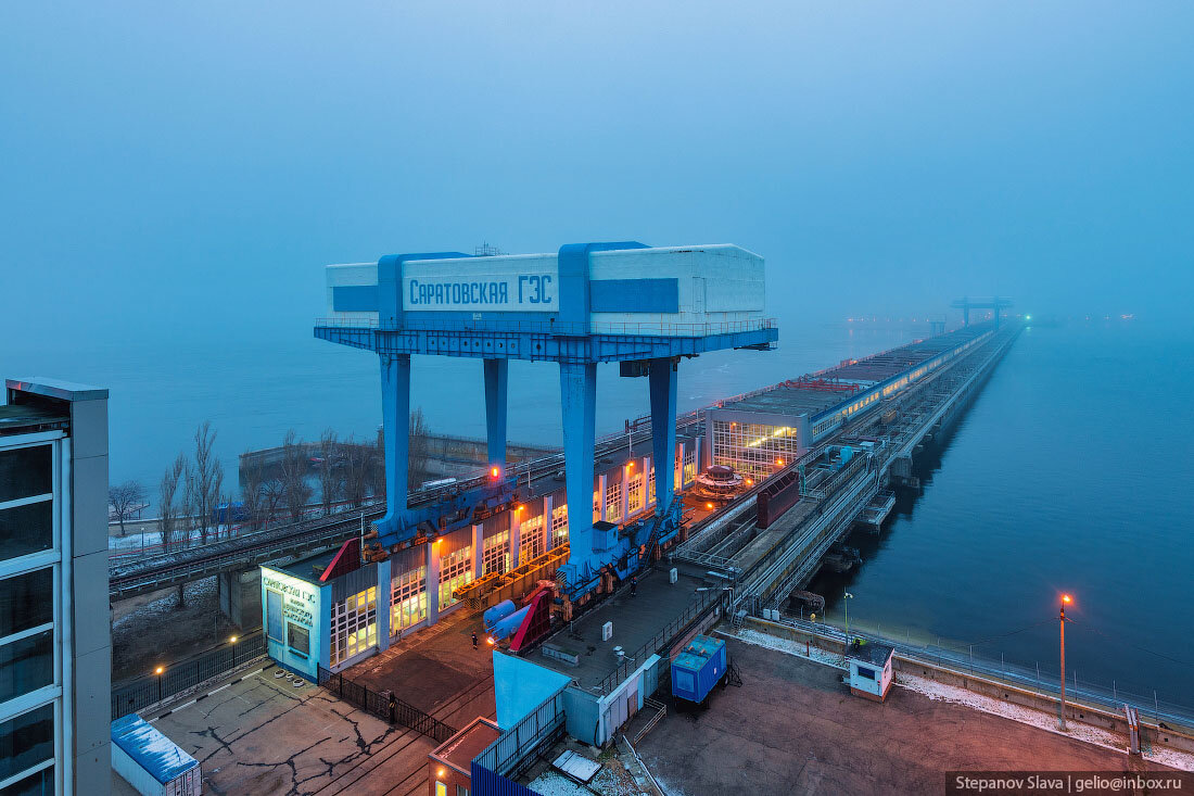 Саратовская ГЭС — гидроэлектростанция на Волге у города Балаково, в 125 км к северо-востоку от Саратова. Была построенна в 1956-1967 годах, а полностью сдана в эксплуатацию в 1971 году. Саратовская ГЭС входит в десятку крупнейших гидростанций России. Станция отличается нестандартной конструкцией — отсутствием водосбросной плотины, а также самым длинным в России машинным залом, имеющим разборную кровлю. На Саратовской ГЭС установлены 24 гидроагрегата трёх разных типоразмеров, которые являются крупнейшими по размерам в своем классе в России. Саратовская ГЭС является седьмой ступенью каскада гидроэлектростанцией на этой реке. Выше расположена Жигулёвская ГЭС, ниже — Волжская ГЭС, последняя ступень каскада ГЭС на Волге. Центральный пульт управления.