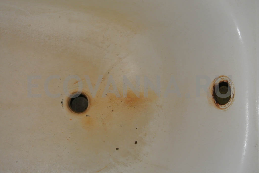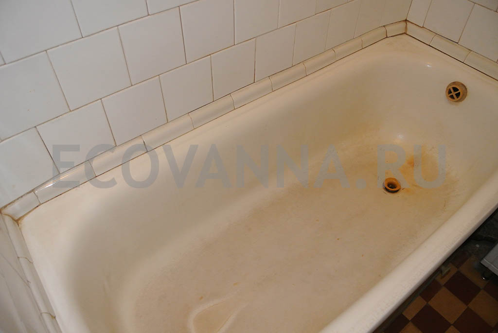 5. Установка обвязки В большинстве случаев, старая обвязка не подлежит обратной установке. Спустя 24 часа устанавливается новая обвязка. Для зачистки ванны используйте дрель или болгарку с насадкой из наждачной бумаги. В зависимости от степени загрязнения ванны можно применять насадки различной зернистости. Зачищайте ванну до полного удаления загрязнений, либо до полного удаления не заводской краски. Не забудьте надеть защитную маску. Под сливное отверстие подложите газеты (бумагу) и небольшую тару, к примеру, банку из под майонеза или разрезанную пластиковую бутылку. Используя щет