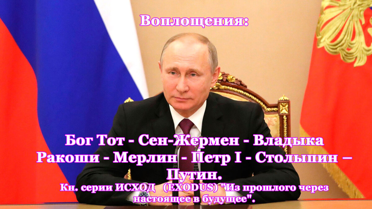 Сайт Золотой Век. Воплощения: Бог Тот - Сен-Жермен - Владыка Ракоши - Мерлин - Петр I - Столыпин – Путин. Книга 2 EXODUS 25.06.1997г. Утро «Много говорилось уже о роли России для будущего. Настала пора осветить этот вопрос. Кто сейчас населяет Россию, почему такая судьба у России? Освещу этот вопрос. Настала пора закрытия на Земле всяческой кармы: кармы отдельных людей, народа, государства, даже самой планеты. Таков сейчас этот важный исторический момент. Какие народности постигла кара Господня? Атлантов и евреев. Так вот Россия - то место, где рождаются сейчас эти люди, то есть те черные маги, которые в Атлантиде нарушали все человеческие и Божественные законы, используя дар ясновидения и других высоких качеств во зло людям и во благо единицам. Это те методы, которые в Германии 40-х годов и в России были доведены этими же душами до абсурда. Это и древние евреи - мои современники и соплеменники, которые кричали, обуянные жаждой крови: «Распни его!». И тогда я говорил, что они