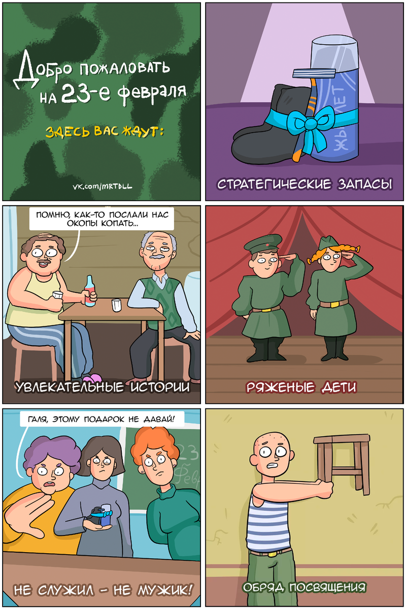Юмор к 23 февраля - 7 смешных комиксов про День защитника Отечества
