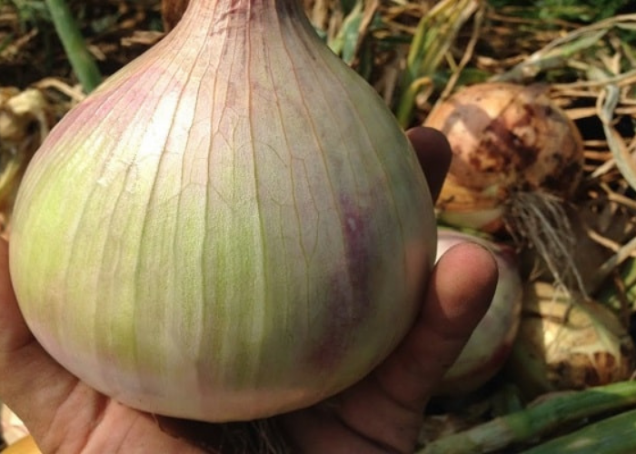 Лук Эксибишен, вырастающий до гигантских размеров, привлекающий внимание нежным и сладковатым вкусом