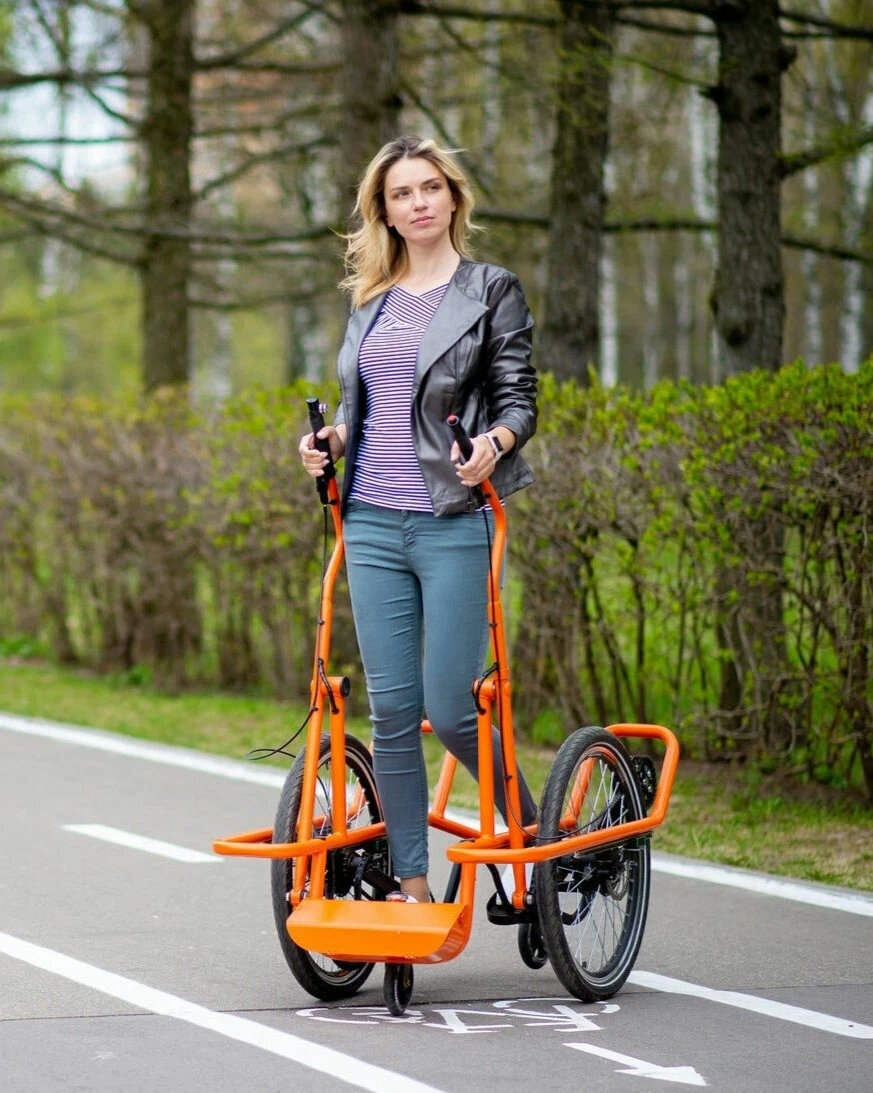 1. Устройство отечественного производства: велосипед-тренажёр. Минус обычных велосипедов по сравнению с тренажёрами-эллипсоидами в том, что они развивают не все группы мышц. Длительное катание может повредить коленям и спине. Здесь же разработчики попытались совместить пользу и безопасность эллипсоида с удовольствием от поездок на велосипеде: